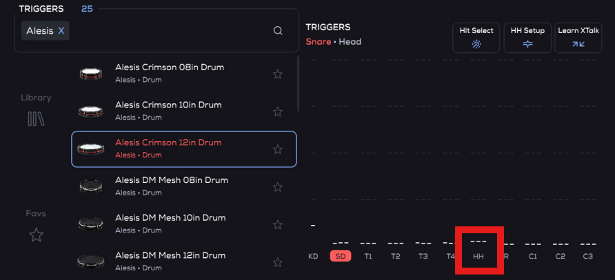 - From the KIT screen, tap the Triggers icon, then tap HH on the center-right of your screen-